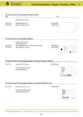 Containerzubehör (Siegel, Schilder, Filter) 1